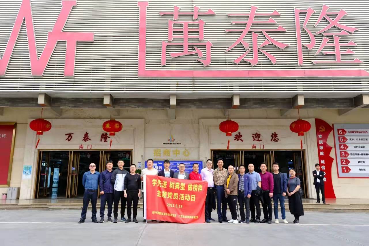 為深入學習(xí)貫徹習近(jìn)平新時代中國特色社會主義(yì)思想和新時代黨的組織路線,進一步提升黨組織的黨建水平,不斷發揮黨支部戰鬥堡壘作(zuò)用,以優異成績慶祝中國共產黨百年華誕(dàn)。2021年(nián)3月18日上午,廣西五金機電商會黨支部與南寧東(dōng)博國際五金機電城黨支部、廣西華凱先鋒商業中心有限公司(sī)黨支部、南(nán)寧市家居建材商會黨支部等(děng)4家(jiā)單位聯合開展“學先進 樹典型 做榜樣”主題黨日活動。