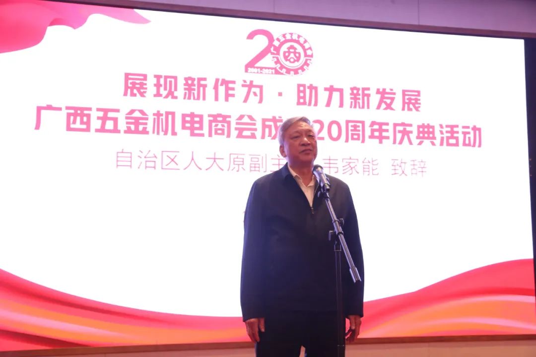 2021年12月(yuè)12日,廣西五(wǔ)金機電商會第二(èr)屆八次會(huì)員大會暨(jì)“展現新(xīn)作為 助力(lì)新發展”慶祝廣西五金機(jī)電商會成立20周(zhōu)年活動在南寧隆重舉(jǔ)行。自治區人大原副主任韋家能先(xiān)生,自治區工商聯副主席吳振秋先生,我會會長梁勇、黨支部書記韋德蓋,執行會長何大等22名執行會長,監事長戚龍及理事會員共200多人參加了這次活動。