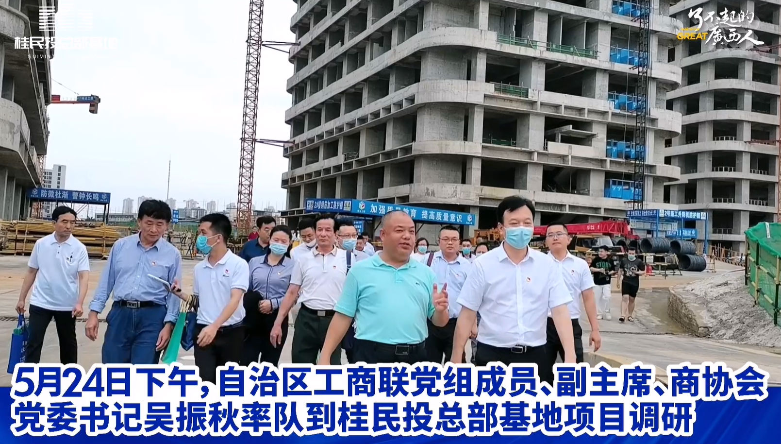 5月24日下午,自治區(qū)工(gōng)商聯黨組成員、副主席、商協會黨委書記吳振秋率隊到桂民(mín)投總部(bù)基地項目調研。自治區工商聯二(èr)級(jí)巡視(shì)員(yuán)李開剛參加調研,桂民投集團董事長鄧亞保作(zuò)項目工作匯報。