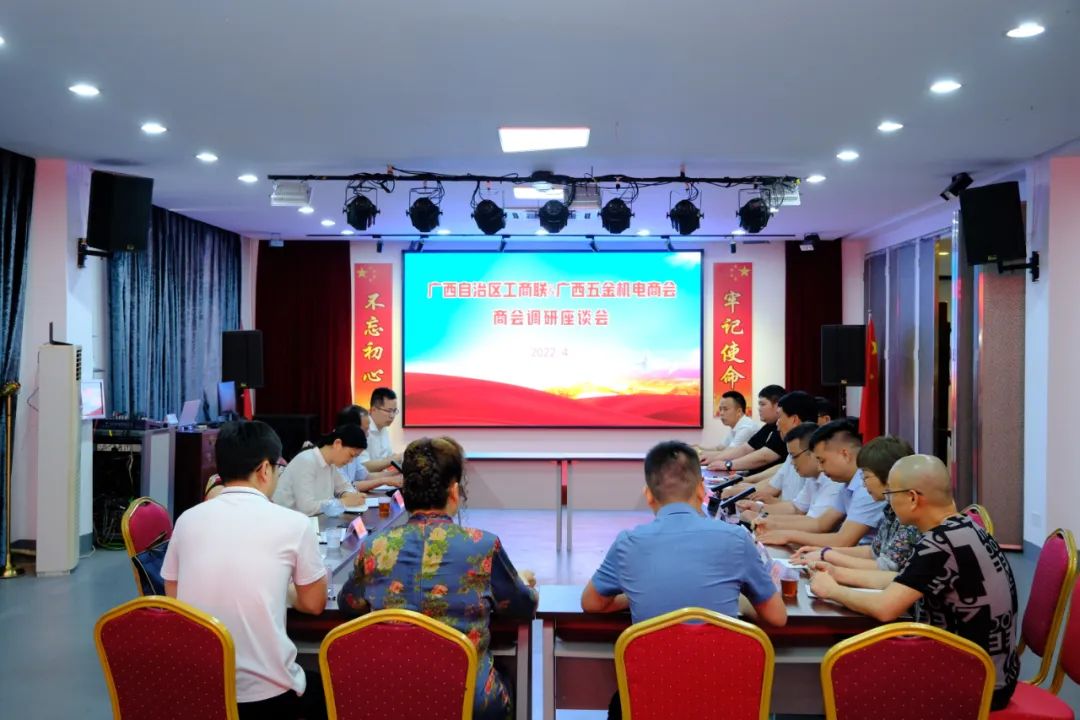 4月29日,廣西自治區工商聯機關黨委陳寧(níng)書記,自治區工商聯研究室趙開莉主任,方盈(yíng)月副主任等一行到(dào)廣西五金(jīn)機電商會進(jìn)行調研考察並座(zuò)談交流。我公司總經理兼廣西五金機電商會黨支部書記(jì)韋德蓋同誌及十(shí)多名商(shāng)會會員陪同並參(cān)加座談會。