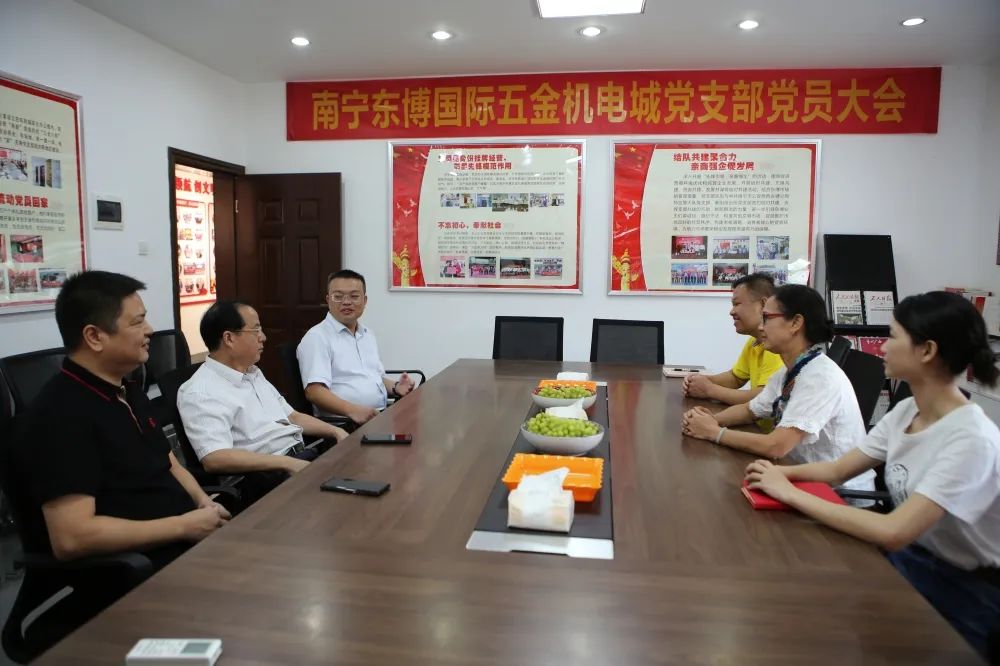 7月29日,自治區工商聯機關黨(dǎng)委書記、一級巡視員陳寧蒞臨南寧東博機電城(chéng)調研指導(dǎo),我公司總經理兼廣西五金(jīn)機電商會黨支部(bù)書記韋德蓋同(tóng)誌陪同。